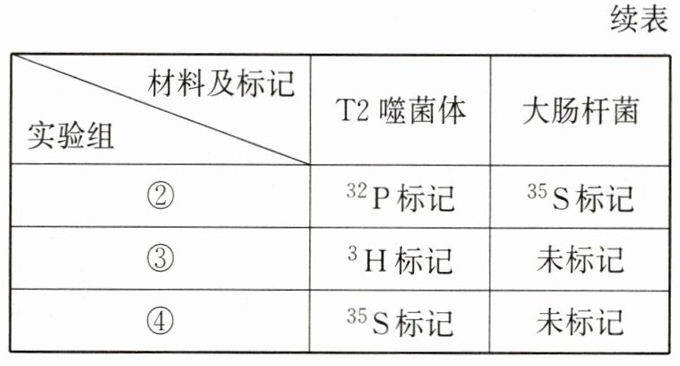 3. (2022·海南卷,13)某团队从如表①~④实验组中选择两组,模拟T2噬菌体侵染大肠杆菌实验,验证DNA是遗传物质。结果显示:第一组实验检测到放射性物质主要分布在沉淀物中,第二组实验检测到放射性物质主要分布在上清液中。该团队选择的第一、二组实验分别是 ( )