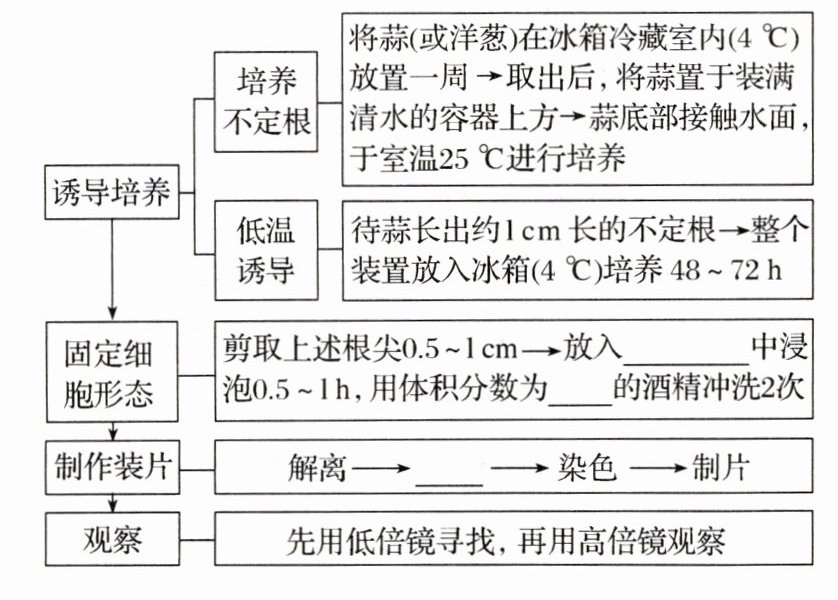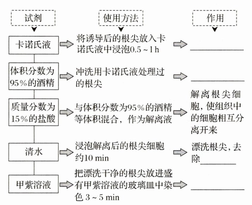 (4)固定细胞形态 洗去卡诺氏液 解离液 使染色体着色