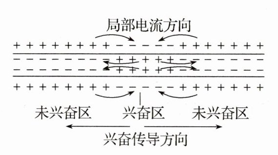 (4)兴奋在神经纤维上的传导方向与局部电流方向的关系