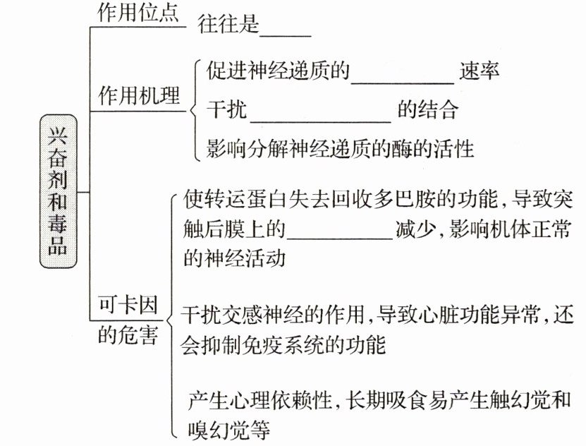 (2)提示:长期吸毒会导致受体蛋白减少,为获得同等愉悦感,需不断增加吸食毒品的剂量。