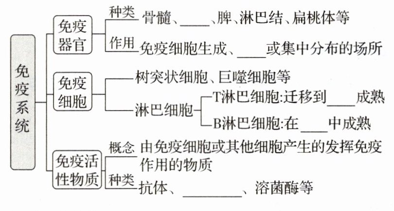 1)胸腺 成熟 胸腺 骨髓 细胞因子 (2)免疫细胞 T细胞 (3)①辅助性T细胞 吞噬、呈递抗原 ②蛋白质 B细胞 摄取和加工处理 (4)①免疫细胞或其他细胞