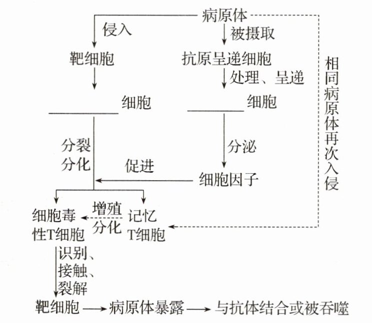 (1)细胞毒性T 辅助性T ②加速细胞毒性T细胞的分裂和分化 (2)细胞毒性T细胞 记忆T细胞 (3)靶细胞