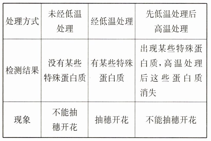 3.(多选)某些植物必须经过春化作用(用低温诱导)才能开花结果。表格是对冬小麦进行春化处理的研究结果,下列说法正确的是 ( )