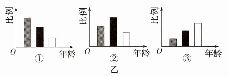 2.图甲为某岛屿上生活着的一种动物种群数量随时间的变化图,分为Ⅰ、Ⅱ、Ⅲ三个阶段;图乙中①②③表示三种年龄结构。与该动物种群发展相对应的年龄结构顺序应是 ( )