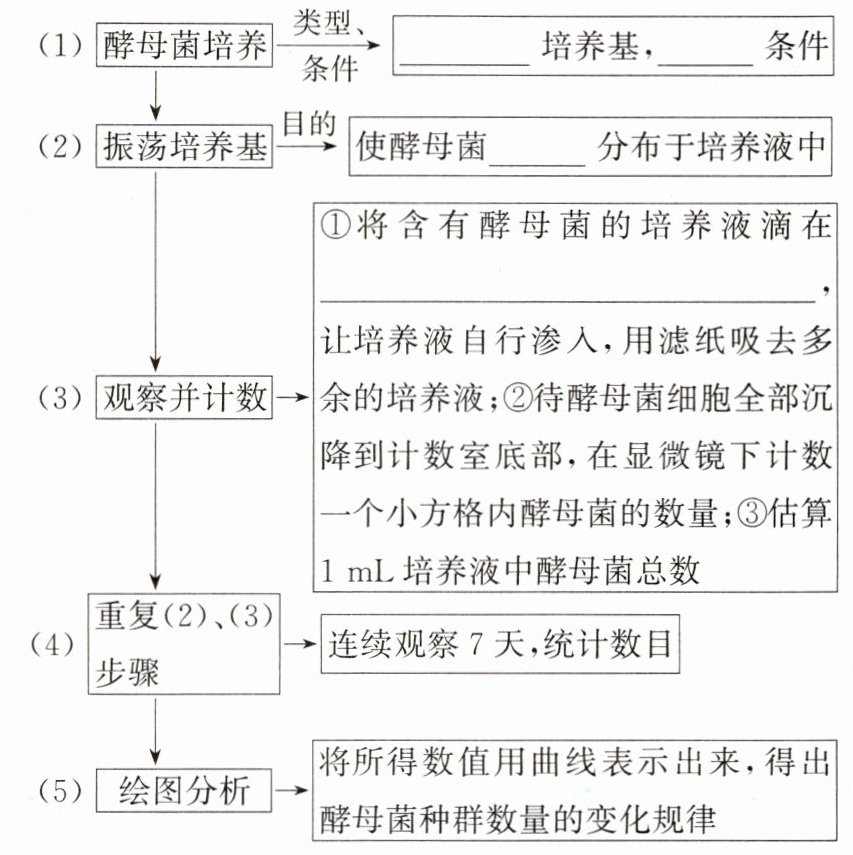 (1)用液体培养基(培养液)培养酵母菌,种群的增长受培养液的____________等因素的影响。