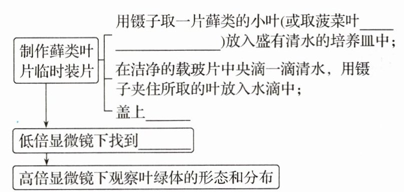 (3)乙同学在用苔藓实验时,直接将苔藓叶片置于载玻片中央清水中制成临时装片,主要是由于苔藓叶片____________________________,整个实验中一定要__________________,否则叶绿体会收缩不便观察。