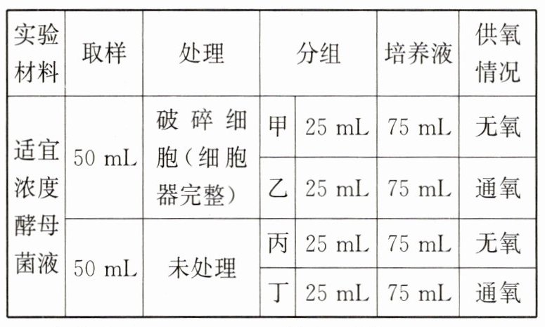 (1)甲、乙两组细胞破碎,但细胞器完整,在无氧环境下,甲组和丙组进行无氧呼吸产生酒精和二氧化碳,乙组和丁组通氧,进行有氧呼吸产生二氧化碳和水,故会产生CO₂和H₂O的组别乙和丁,会产生酒精的组别甲和丙。乙组和丁组都进行有氧呼吸,但乙组细胞被破坏,与有氧呼吸有关的酶活性受影响,其代谢能力低于丙组,因此乙组的氧气消耗量小于丁组。