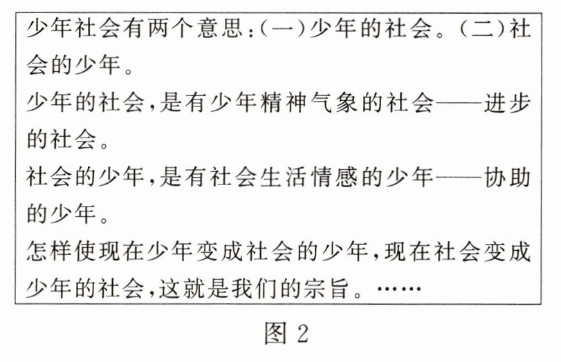 (2023·山东等级考·T6)图2为1919年12月《少年社会》的创刊宣言。这表明该刊编者认识到 ( )