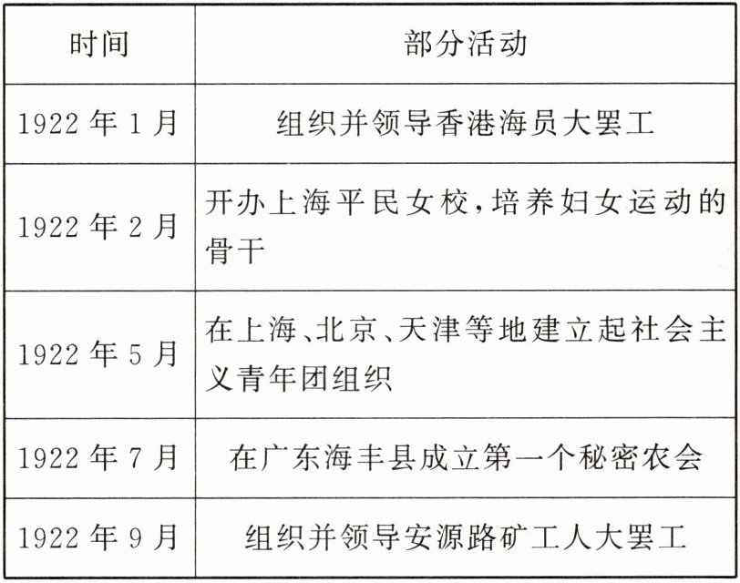 6. (2022·天津等级考·T7)下表为中国共产党创建初期的部分活动。