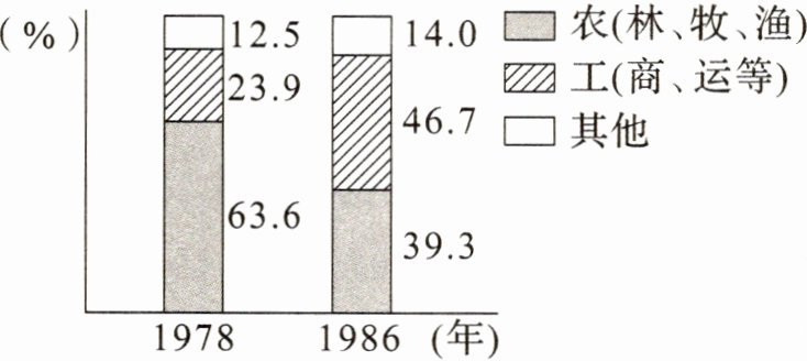 4.(2022.全国乙卷.T31)下图是1978年与1986年北京郊区男户主职业占比变化情况。这一变化产生主要是由于 ( )