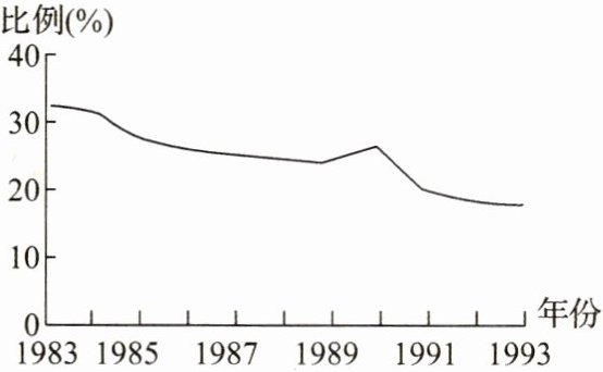 5.(2022.山东等级考.T9)如图为1983−1993 年我国第一产业占国内生产总值比例(%)变化情况。导致这一变化的主要因素是 ( )