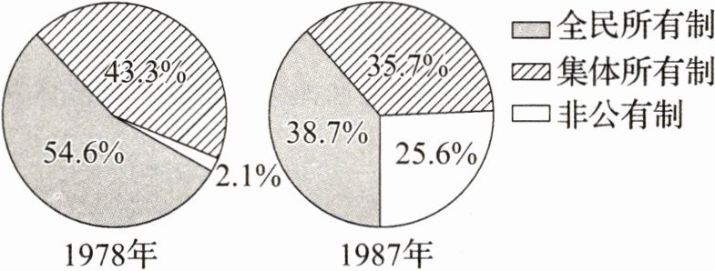 如图为1978年和1987年全国社会商品零售总额中各经济成分所占比重图。图示占比变化反映出 ( )
