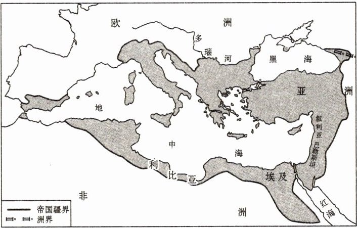 A 据本题时间信息可知准确时空是古代世界两个帝国。根据所学知识可知,波斯兴起于伊朗高原,迅速征服了包括两河流域、埃及、小亚细亚和巴尔干半岛北部在内的广大地区,建立起地跨亚非欧三大洲的帝国;6世纪时,拜占庭一度扩张,先后占领北非和意大利等地,A正确。罗马帝国把整个地中海变成了罗马的内海;亚历山大帝国包括小亚细亚、埃及、两河流域和伊朗高原及印度河流域,是继波斯之后再次建立的地跨亚非欧三洲的大帝国,但在疆域上的区别在于,其领土覆盖了马其顿和希腊,故不可能是亚历山大帝国,排除B、C、D。