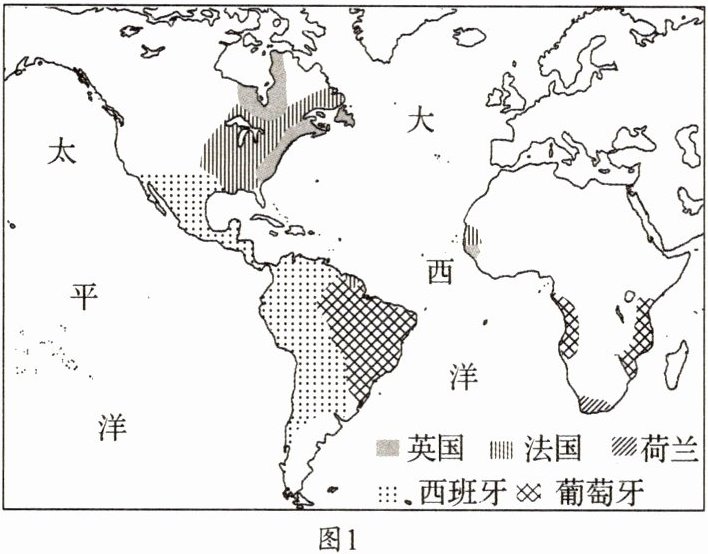 4. (2023·山东等级考·T12)图4为某一时期欧洲主要殖民国家在美洲和非洲的殖民地分布示意图。这一时期 ( )
