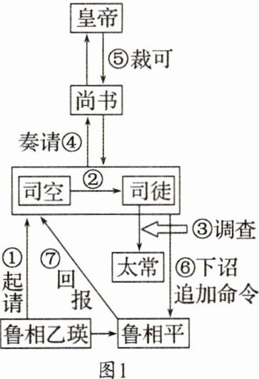 5.(2023.海南等级考.T2)据东汉《乙瑛碑》载,鲁相乙瑛向朝廷陈请,为孔庙增设一名百石卒史来守庙并掌管礼器(流程如图1)。这一史实最适合用来说明,当时 ( )