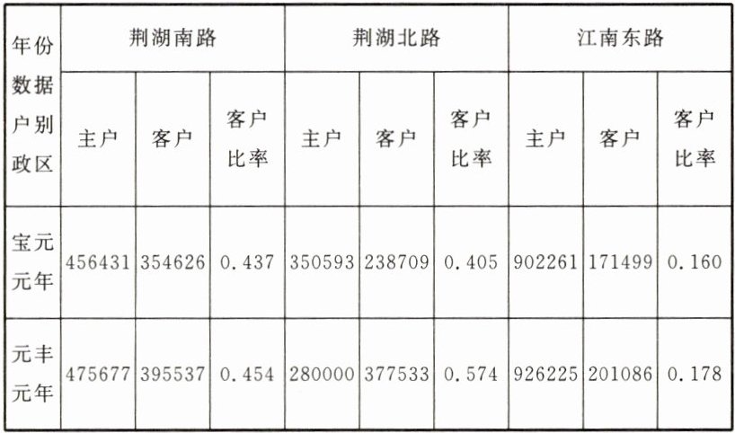 (2023·湖北选择考·T4)宋代依据有无田产,将全国户口分为主户和客户。下表是北宋宝元元年(1038)和元丰元年(1078)三路主户、客户的统计数据,表中客户比率变化反映 ( )