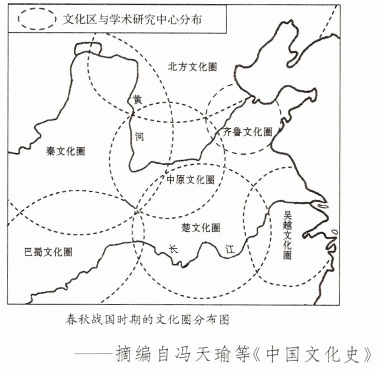[思考3]据材料,概括指出春秋战国时期中华文化圈的特点。