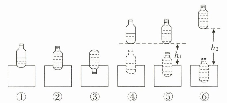 20. (2022·天津中考)热爱劳动的津津,在家学做天津特色菜“贴饽饽熬鱼”时,一个饮料瓶不小心落到了松软的玉米面团上,在面团上留下较深的痕迹. 于是他灵机一动,利用玉米面团和装有水的饮料瓶,依次做了如图所示的实验,对如下两个问题进行了探究.