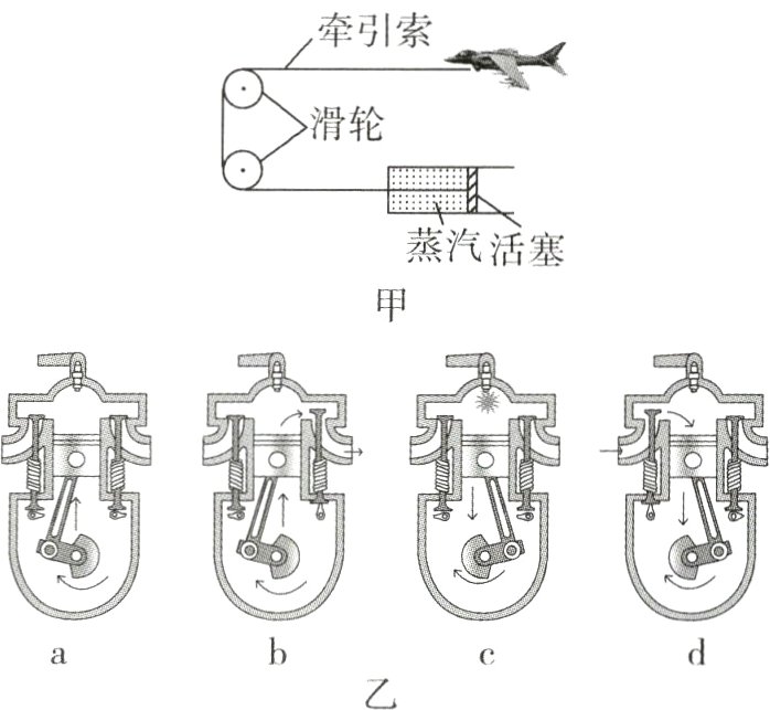 5. 如图甲为航母上蒸汽弹射装置的简化示意图,该装置能带动舰载机在2秒内达到起飞速度,如图乙为汽油机的四个冲程. 下列判断错误的是( )