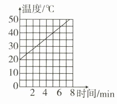 16. 用一个电热器对某液体加热,如图所示是液体的温度随时间变化的图象(设电热器提供的热量全部被液体吸收). 液体体积为1 L,密度为0.8×10³ kg/m³,则该液体的质量为________ kg. 由图可知,在5 min时间内,液体的温度升高了________℃,若液体吸收的热量为4.2×10⁴ J,则液体的比热容是________J/(kg·℃).