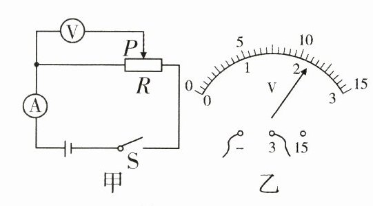 17. 如图甲所示,闭合开关时,电压表示数如图乙所示,为______ V;将滑动变阻器的滑片P向右移动时,电流表示数将______,电压表示数将______(后两空均选填“变大”“变小”或“不变”).