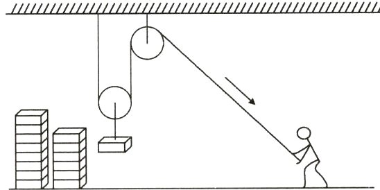 23.(6分)建筑工地上,工人们需要将一堆建材运到10 m高处. 小董设计安装了如图所示的装置. 装置中每个滑轮重100 N. 工人利用该装置每次匀速提升一块重900 N的建材,建材上升的速度是0.6 m/s,在施工过程中,求: