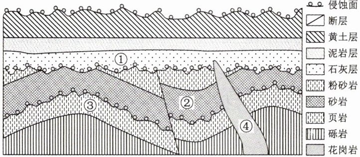 4. 该区域①②③④岩层形成的先后顺序依次为(
