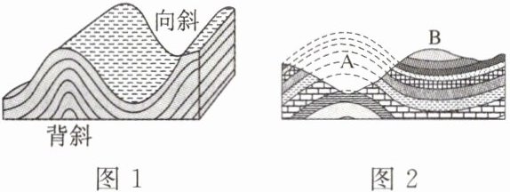 (1) 概念:岩层在①产生的强大挤压力作用下发生塑性变形而产生的一系列②弯曲。