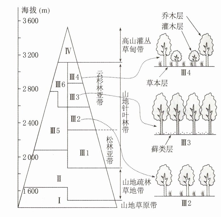 (3)该山地Ⅲ2、Ⅲ3、Ⅲ4中的植被垂直分层结构不同,其主要影响因素是( )