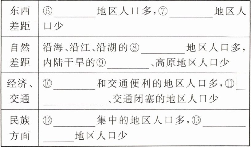 包括生产力发展水平、生产方式、交通运输条件、文化教育状况等,其中⑯对人口分布的影响最为显著。
