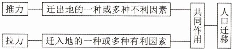 【思考】对。当前影响人口迁移的主要因素是经济因素,但不能说成人口迁移的决定因素是经济因素。因为最终决定人口迁移的因素可能有很多。如美国老年人退休之后由东北部迁往南部阳光地带的决定因素是气候。
