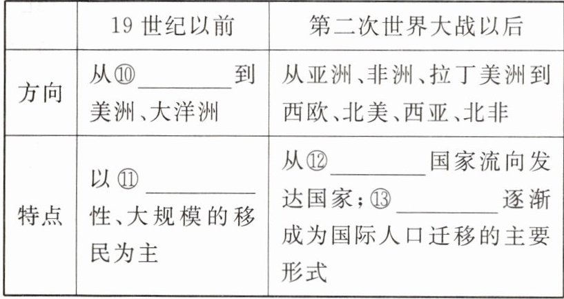 ⑩欧洲 ⑪集团 ⑫发展中 ⑬外 籍工人 ⑭战乱 ⑮农村 ⑯城镇 ⑰户籍管理制度 ⑱有组织