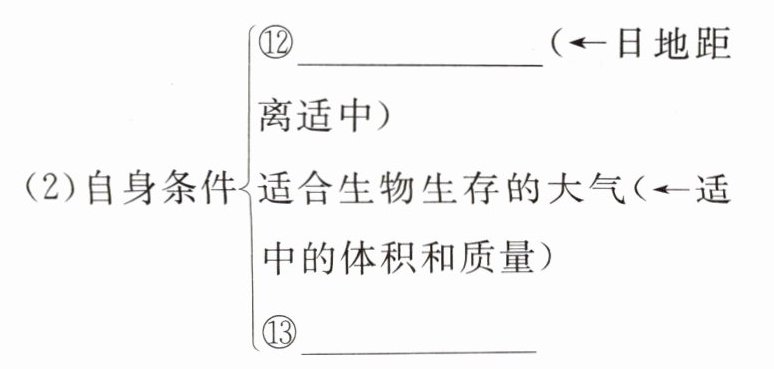 ⑤水星 ⑥地球 ⑦木星 ⑧土星 ⑨天王星 ⑩类地行星 ⑪同向性 ⑫适宜的温度 ⑬液态水的存在
