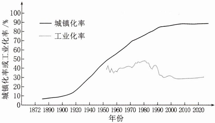 2.C 解析 1945年后二战结束,欧洲殖民主义扩张不会是巴西城镇化发展的主要推动力,A项错误;根据所学,工业化是推动城镇化的主要动力,根据图示,1950年开始巴西工业化水平急剧提高,说明其重工抑农政策对城镇化快速发展起到了重要作用,C项正确;此期间巴西经济发展重点在工业,不是服务业、基础设施,B、D两项错误。故选C。