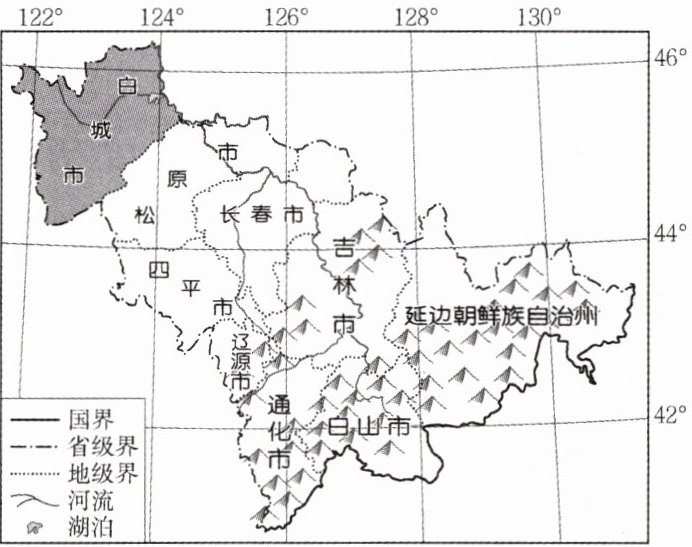 燕麦是世界公认的健康食品,在我国,燕麦将孕育为一个大的健康产业。白城市位于吉林省西北部,嫩江平原西部,科尔沁草原东部,有大片面临沙化的盐碱地,生态环境比较脆弱。1998年起,中加两国专家用了近10年时间,成功培育出能生长在盐碱土壤、风沙、干旱等环境的新燕麦品种。该品种不仅具有了很强的抗旱、抗风沙性,而且能够大量吸收土壤中的盐分,燕麦生长的地方,周围的杂草也长得非常好。白城燕麦可以一年两季,产量更高,是治理盐碱地首选的“生态产业”。近年来,白城市紧紧抓住新一轮振兴东北和“健康中国”战略机遇,全力建设“东方燕麦之都”。下图示意白城市位置和分布。