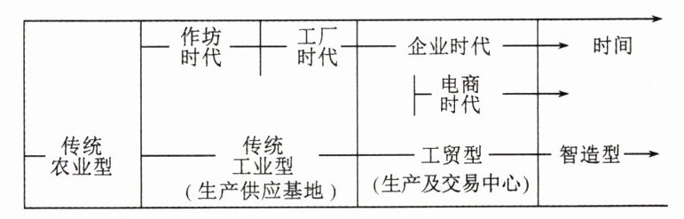 【例2】(2023·广东卷)浙江省温岭市制鞋业发达,Z镇是该市最大制鞋基地,其制鞋业始于20世纪80年代。近年来,随着电商的发展,该镇制鞋业趋于更加灵活化。下图示意Z镇制鞋业发展历程。据此完成(1)~(2)题。