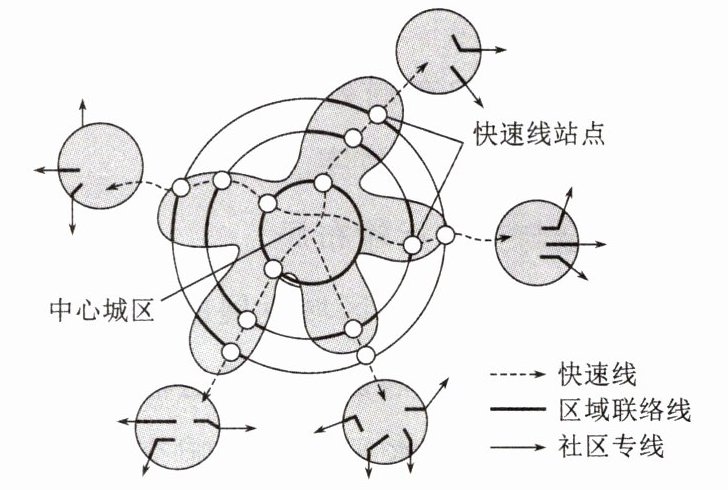 (3) 说明沿快速交通线两侧进行高密度开发对城市发展的作用。
