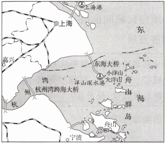 材料二 洋山深水港位于杭州湾口外的嵊泗崎岖列岛,该列岛由大洋山、小洋山等多个岛屿组成。洋山深水港是我国首个在海岛上建设的特大型智能化港口,其通过东海大桥与上海连接,是上海建设国际航运中心的核心工程。4—6月洋山深水港及其附近海域海雾多发,平均每年有42天会出现海雾天气。下图为上海港和洋山深水港位置示意图。