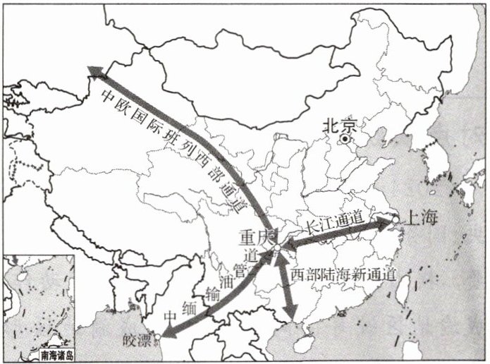 重庆是成渝城市群的中心城市,与周边城市和地区之间的沟通交流频繁,带动周边地区的发展;重庆是长江经济带的核心城市之一,依托沿江通道,通江达海,促进长江经济带的发展;重庆作为国家物流枢纽,通过便利的公路、铁路及航空等完善的交通运输网及发达的信息网络,促进了物资等全国范围内的流动;重庆是连接亚欧的节点,通过中欧班列、中缅输油管道、西部陆海新通道等交通通道,联通亚欧,通达世界,成为全球的物流枢纽和信息中心,发挥着重要的节点作用。