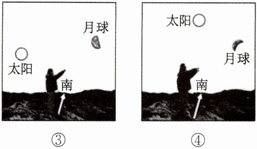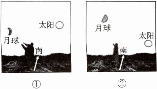 [例1] (2023.浙江卷)某中学地理社团组织成员开展月相观测。2021年2月19日农历正月初八,有同学用肉眼在湛蓝的天空中观测到了日、月同天景象,并作记录。同时,部分同学还从网上查到,位于(0°,105°W)的地点可观测到月球正在地平线落下?。完成(1)~(2)题。