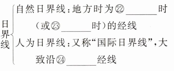 b.区时:每个时区中央经线的㉑即为该时区的标准时。