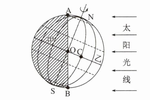 (2)晨昏线:⑬半球的分界线,分为⑭线和昏线,图中AOB线为⑮线。