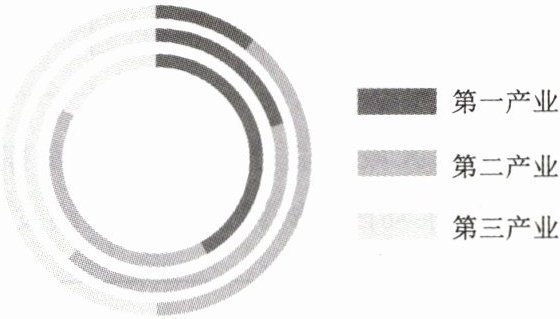 (2023·浙江模拟)下图示意湖南省产业比重变化,自内向外环形分别代表 1980 年、2000 年和 2020 年。读图,完成 1~2 题。