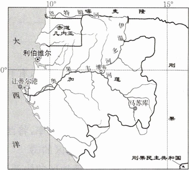 加蓬为非洲国家,其沿海为冲积平原,内地为高原、山地。该国2月中旬到5月中旬为大雨季,5月中旬到9月中旬为大旱季。奥果韦河是加蓬境内最大的河流,全长约1210千米,流域面积约22.3万平方千米,流域内植物种类丰富。奥果韦河近年来虽然有所开发,但目前开发利用率较低。下图为加蓬的地理位置示意图。
