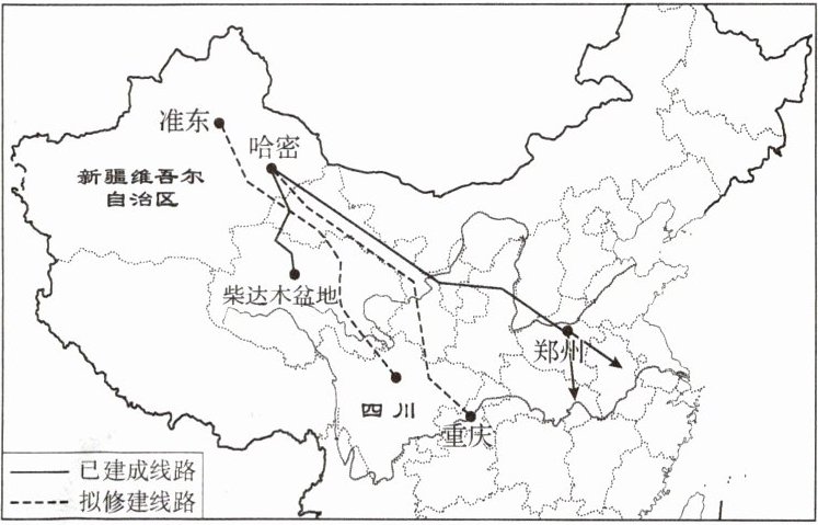 (2)东部地区:减小交通运输压力;优化能源消费结构,改善生态环境。新疆:有利于新疆能源开发,进一步促进新疆的能源优势转化为经济优势;带动相关产业发展,促进产业结构调整;增加就业机会;维护民族团结,促进社会和谐。
