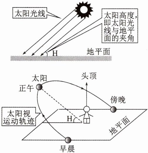 所在纬线向南、北两侧递减。3. 正午太阳高度的季节变化。