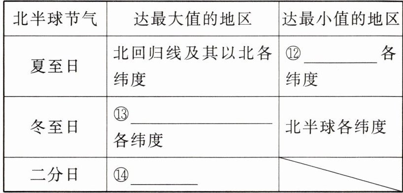 1. ⑦增大 ⑧大 ⑨减小 ⑩最大 2. ⑪太阳直射点 ⑫南半球 ⑬南回归线及其以南 ⑭赤道