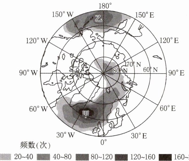 【例1】(2022·广东卷)某研究统计了50°N以北地区1979—2016年发生的所有气旋,并将中心气压值最低的前5%的气旋定义为超强气旋。下图示意该地区1979—2016年超强气旋总频数空间分布。据此完成(1)~(2)题。