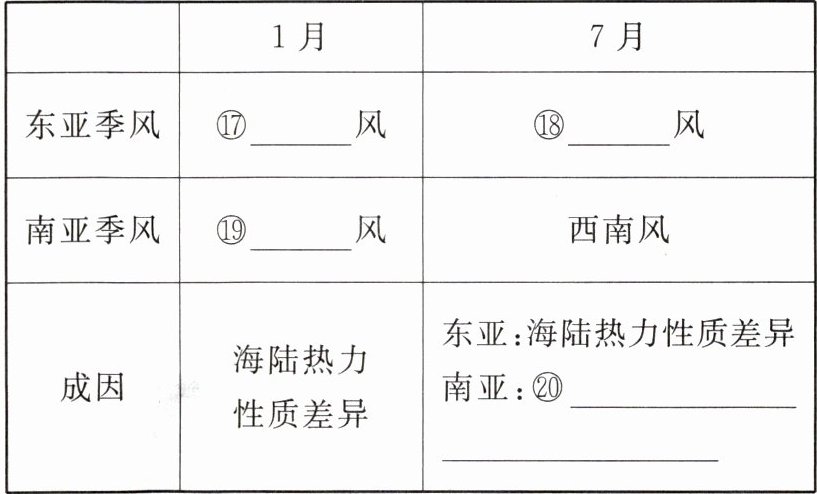 【思考】说一说南亚和东亚冬夏季风强弱差异表现。