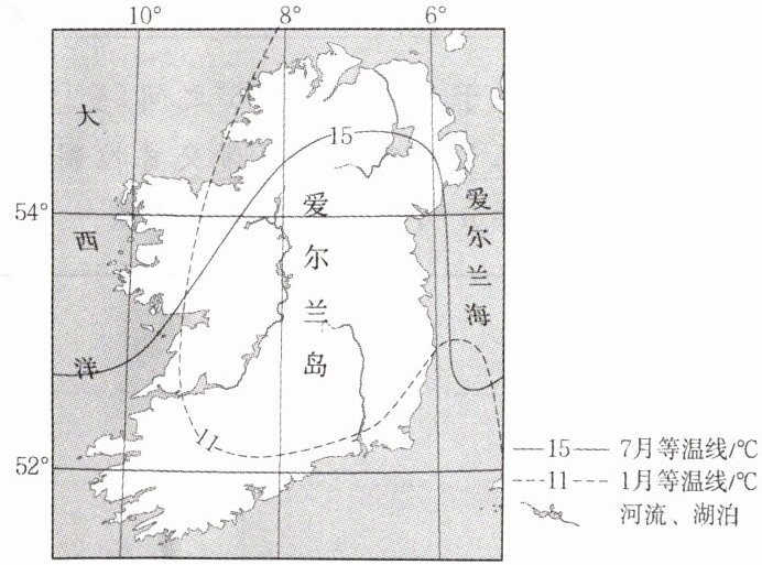 3. 爱尔兰岛冬夏季等温线的分布说明该岛屿 (